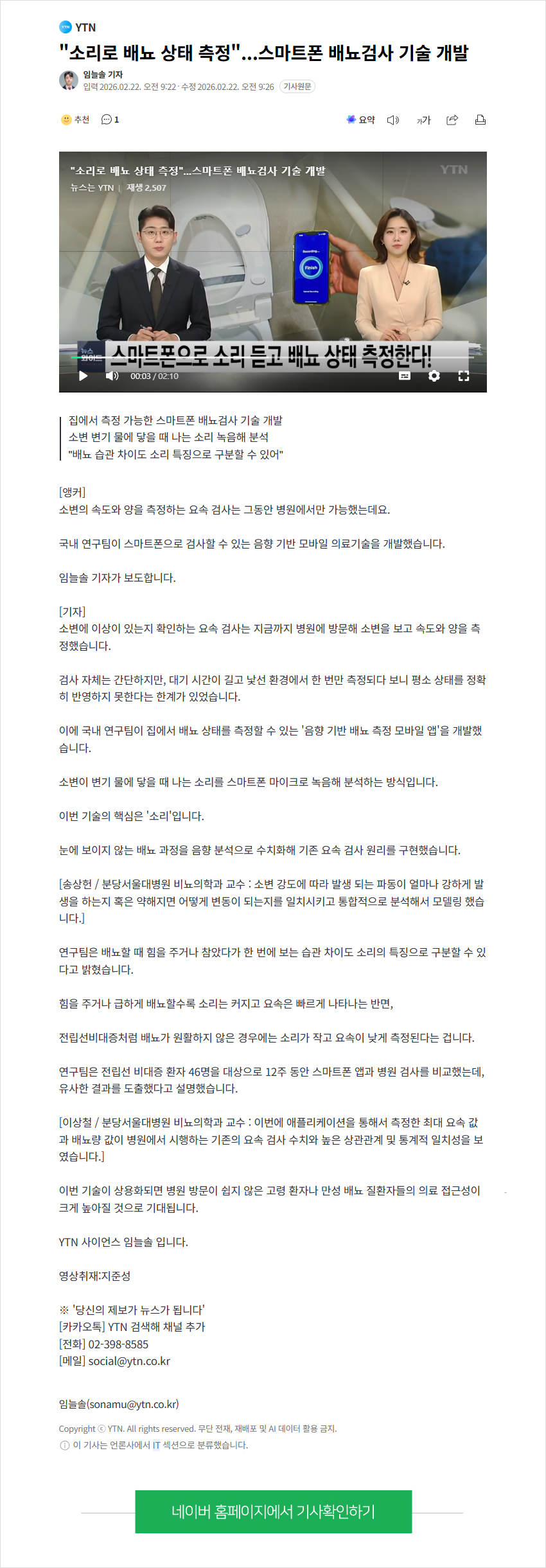 소리로 배뇨 상태 측정...스마트폰 배뇨검사 기술 개발 / YTN